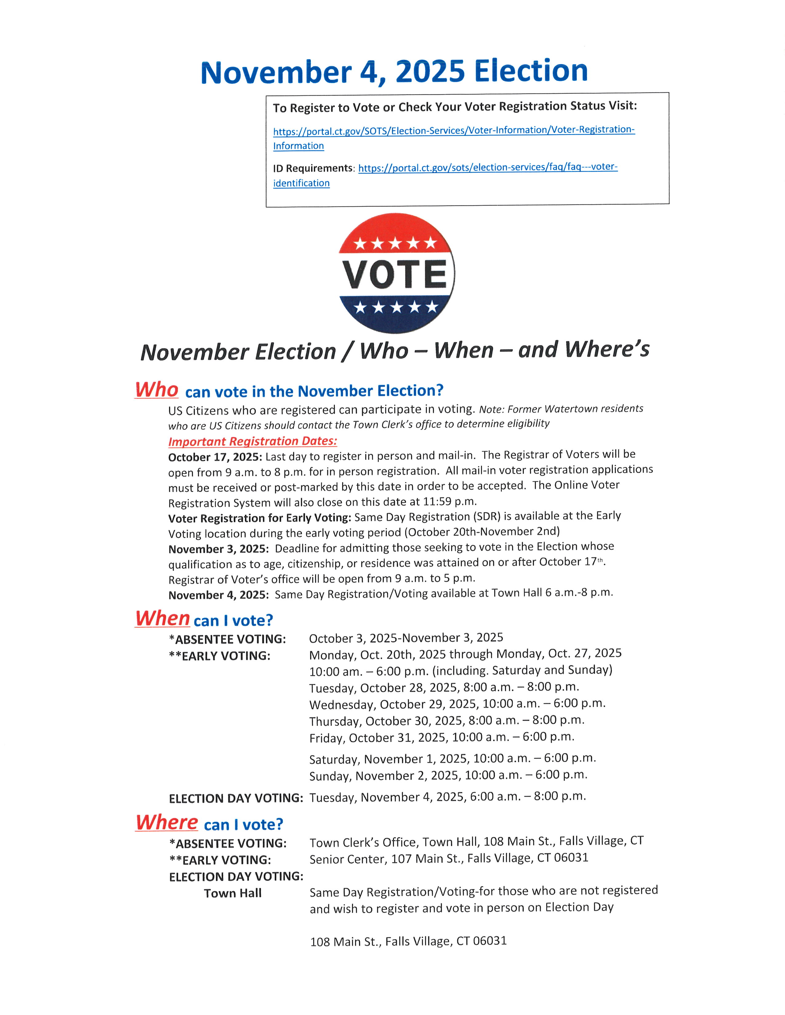 WINNERS - Canaan (Falls Village) Municipal Election - November 4, 2025